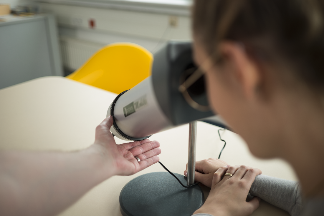 Iki gözünü de açarak cihazın içindeki dairelere bak. Her dairede bir boşluk göreceksin. Ilk üç sıradaki daireleri soldan sağa ilerleyerek oku. Bu sırada dairelerdeki boşluğun hangi yönde olduğunu söyle.